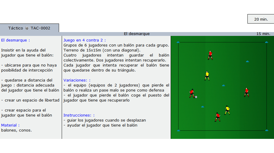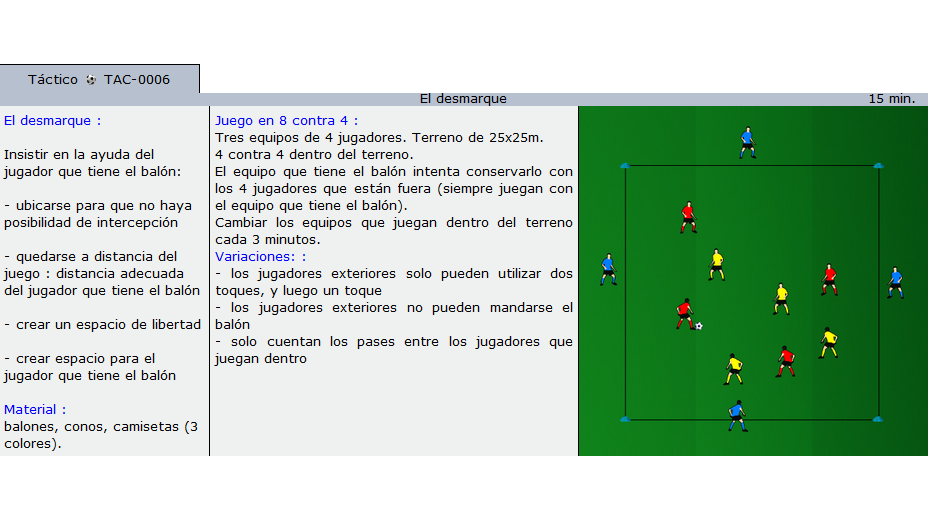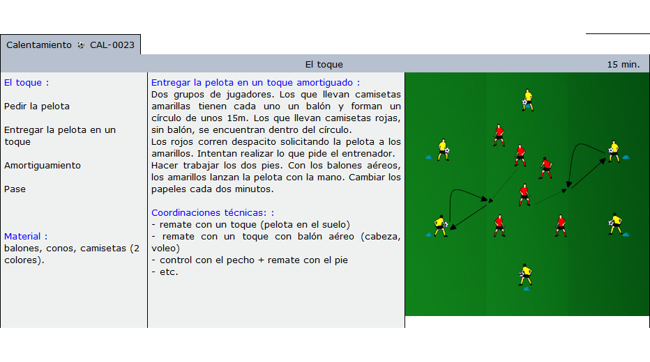 Comparar rápidamente los ejercicios ordenados por tema y añadirlos a sus sesiones. Ejercicios y diversos juegos para todos los niveles.
